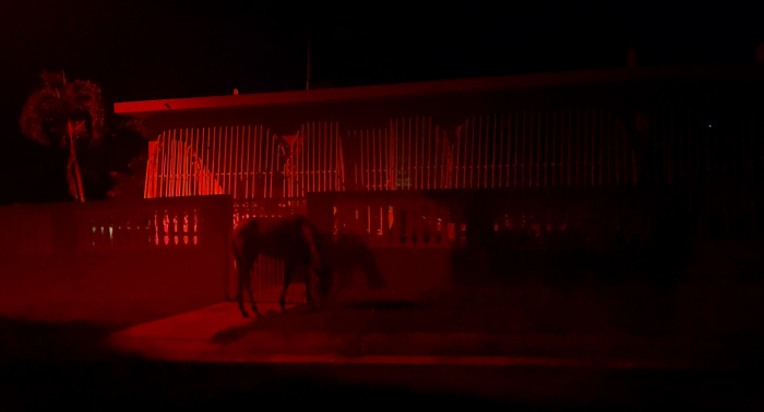 Night falls on the island of Zuania, once a military base, now a coveted tourist destination in the Caribbean. Turtle hatchlings head for the sea as a ferry packed with visitors arrives. A guide leads us inland, where another species of free-roamers is proliferating.
